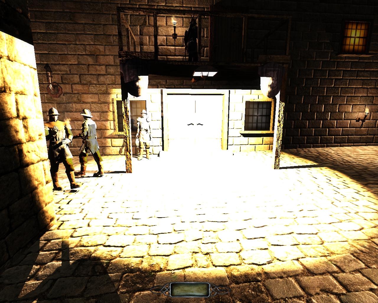 | The two window textures flickered, as well as the metal on the citywatch, the door handles, and the AI hands. The wood, bricks, cloth and stone around the light did not flicker. | |