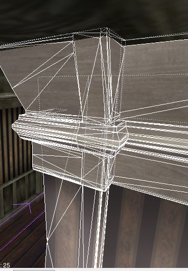 More stretched textures: /darkmod/nautical/galleon.lwo and /darkmod/nautical/galleon_hull_closed.lwo on the quarter gallery around the lower stern (see attached screenshot). Edit: Another problem with galleon.lwo, some of the steps this time. It looks as though there's something wrong with their geometry as well as the stretched texture. |