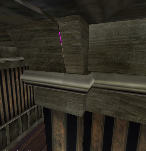 | Another candidate: tdm_cover_glass in mansion_greenhouse_01.lwo. I speculate that this may be the cause of the glitchy shadow-like effect shown in the uploaded image. | |