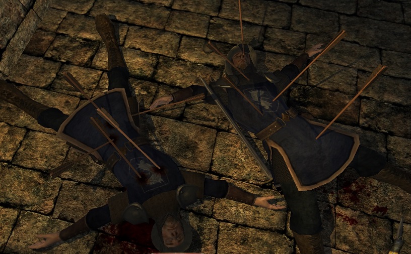 When you fire an arrow at a surface that is marked as "flesh" or "cloth", it should spawn a wound decal on the body. By default, the citywatch arms/legs are set to "cloth", and the torso is set to "chain" (which doesn't spawn wounds). However, on citywatch using the cloth skins (where the chainmail is swapped for rough cloth), the torso then uses the same material as the arms/legs, so it should now register as "cloth" and behave accordingly. However, I cannot get wound decals to appear in that case. At first I thought it might be because the new surface type was not being applied properly, so it still registered as chainmail, but tests with platemail surfaces behaved properly. To reproduce this, take a citywatch and give him any of the skins that has cloth sleeves instead of chain ones. Then KO him and shoot the torso. No blood appears. (I have to test this further to be sure, but I don't think I was getting wounds on the townsfolk_female's torso either.) |