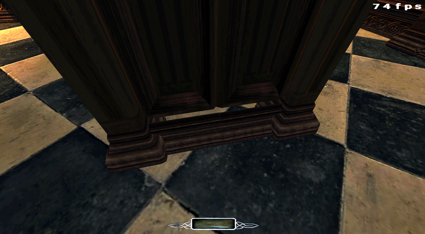 | The pieces with angled bits along the wall/floor need to be surrounded with clip. Otherwise when the player falls on them, he is projected outwards. Also makes creeping along the wall awkward. This applies to most of the mansion01 pieces as well as the bookshelves. | |