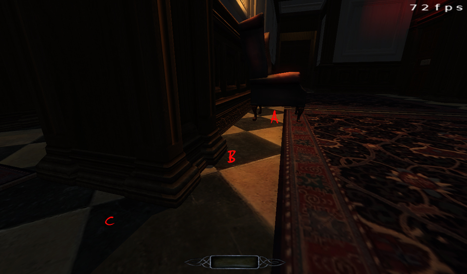 I attached another image, from bikerdude's work on Shadowhide's mission. Note that the small chair is throwing a shadow from the fireplace, but the problematic chair throws no shadow. Could you post a screenshot showing the chair casting a shadow? |