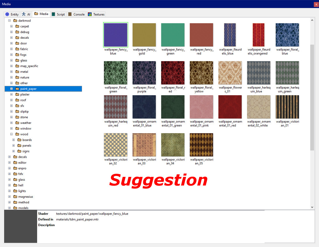| Description | At the moment the materials browser shows a list of material names, but only when clicking on each one do we see the editor image. It would be nice if each time we selected a category, we then saw a grid of thumbnails, like the texture browser, so we could see them all. | ||||