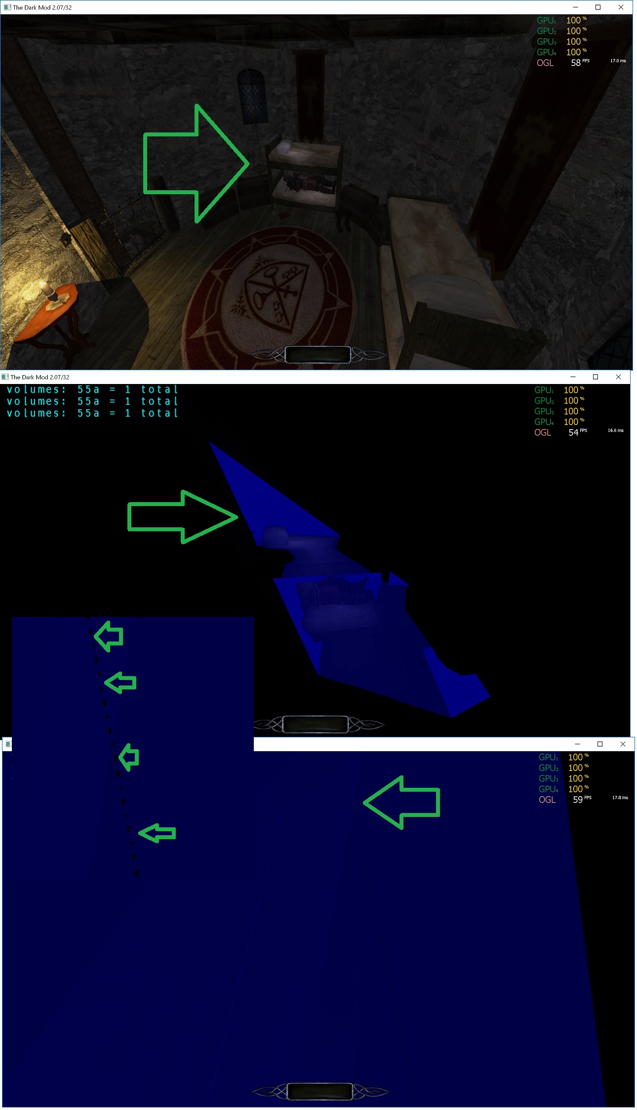 | Steps To Reproduce | Use the map from attached map (originally posted on http://forums.thedarkmod.com/topic/19659-feature-request-emissive-materialsvolumetric-lights/) and the shaders | ||||