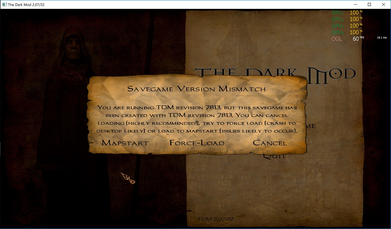 So there has been another report that definitely requires alterations to the gui: http://forums.thedarkmod.com/topic/19841-quicksave-quickload-not-working/ While I am at it, I am also adding a cvar that allows you to ignore mixed svn revisions. |