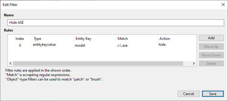 You can filter by the extension in the "model" spawnarg value, see the attached image to create a filter hiding all .ASE models. Does this do the trick for you? |