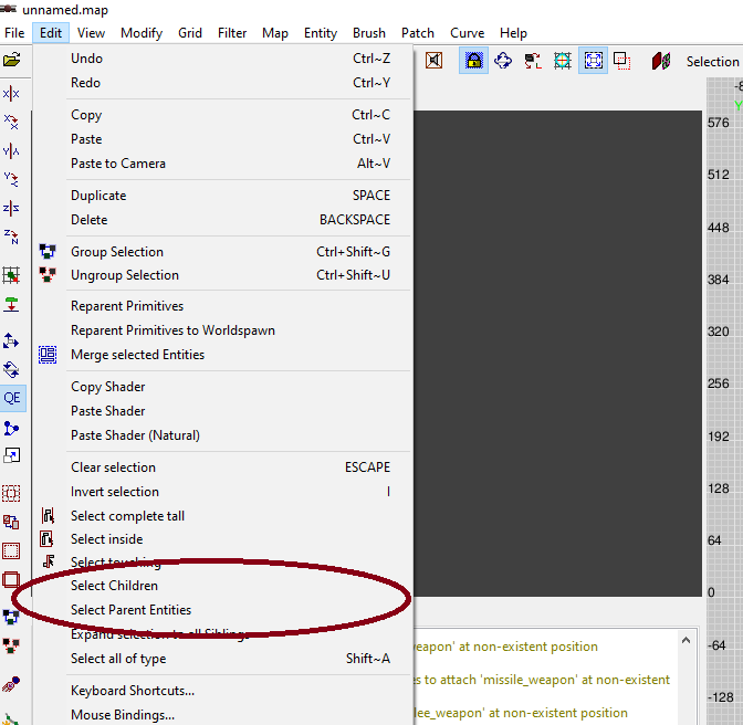 | Description | As per 0005122: To complement "Selection by Filter", which selects individual members of groups such as func_statics, a method to expand the selection to the whole group would come in handy for purposes of inverting + hiding the selection to show nothing but the groups containing these members. A shortcut would be handy for this as well, for performing something like this swiftly: "Select by Filter" -> Nodraw Textures -> [shortcut] + i + h (= Select Parent Entities -> Invert -> Hide) Or maybe even better would be a place under "Select/Deselect by Filter" on the drop-down context menu, as these functions may often get used together? Another name could be "Expand Selection to Parents", to give a better idea of what it does. | ||||