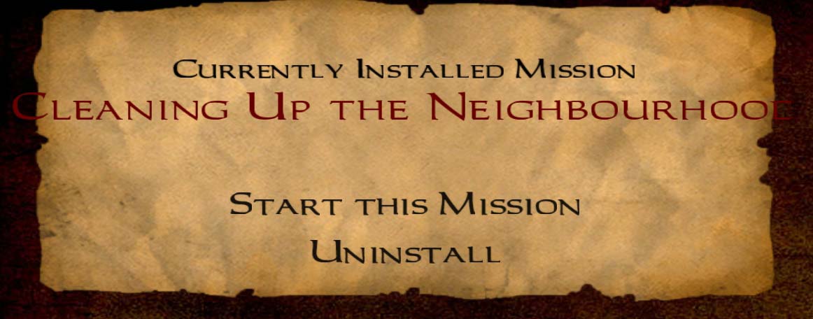 | Steps To Reproduce | In darkmod.txt, give the mod a name of "Cleaning up the Neighbourhood". Install the mission and select New Mission. | ||||