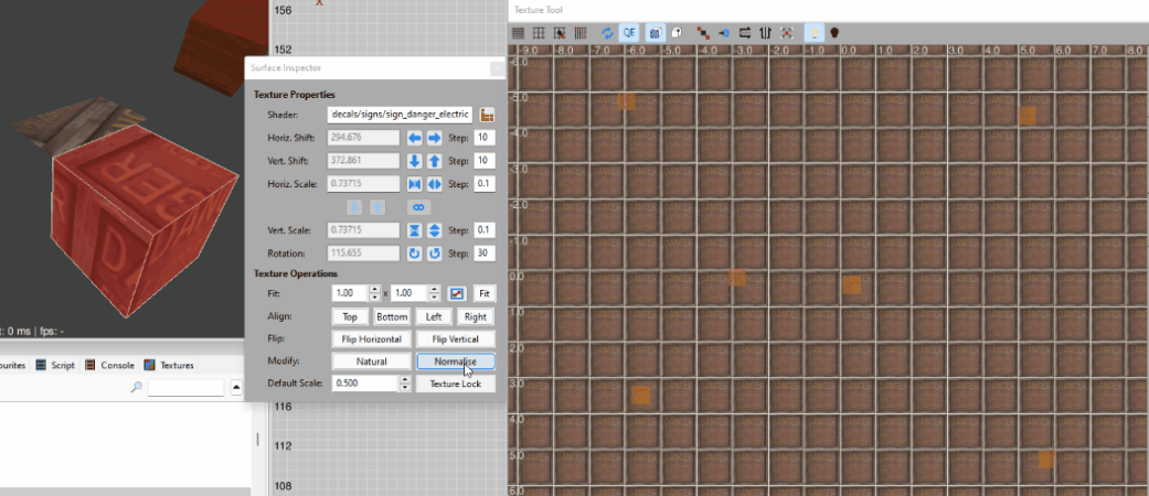 | Description | Texture coordinates tend to have large offsets from the origin, which has effects such as these: - UV islands are separated by huge distances in relation to their size, making it difficult to align them with each other with the Texture Tool since they first have to be dragged into each other's vicinities - opening the Texture Tool can take extremely long if one has multiple brushes selected, to the point that it looks like DR has crashed, because the initial view is zoomed out so far It'd be good if UV islands were closer to 0,0 and to each other, i.e. by making texture tools like "Natural" place all the UV islands of a brush adjacent to each other. Maybe the Texture Tool could also "normalise" the UV islands, such that they're all placed in the tiles around 0,0 (even if behind the scenes the coordinates still have huge offsets). | ||||