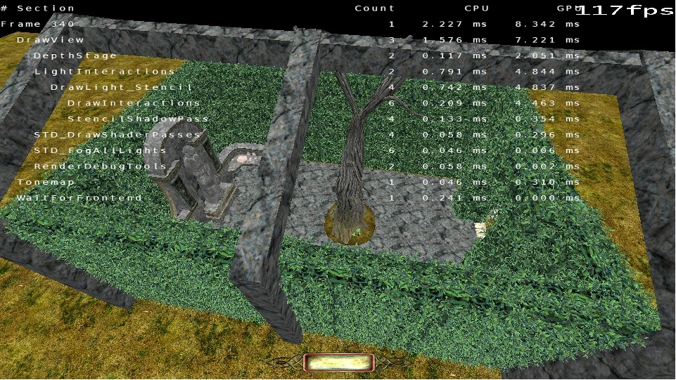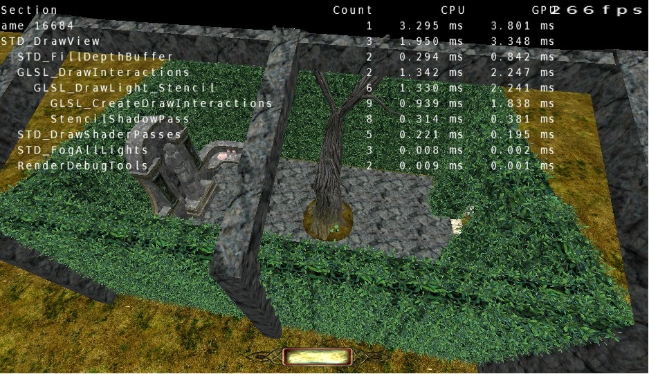 | Steps To Reproduce | Use attached test map. 1) Dmap it with "noflood" keyword: dmap noflood crazyhedge.map 2) Start map: map crazyhedge.map 3) Check FPS. Notes: * Enable Uncapped FPS ("com_fixedTic 1"). * Set "com_maxfps 500" or something like that if you are limited by 166 FPS. * I tested on lowest settings (defaults). | ||||
