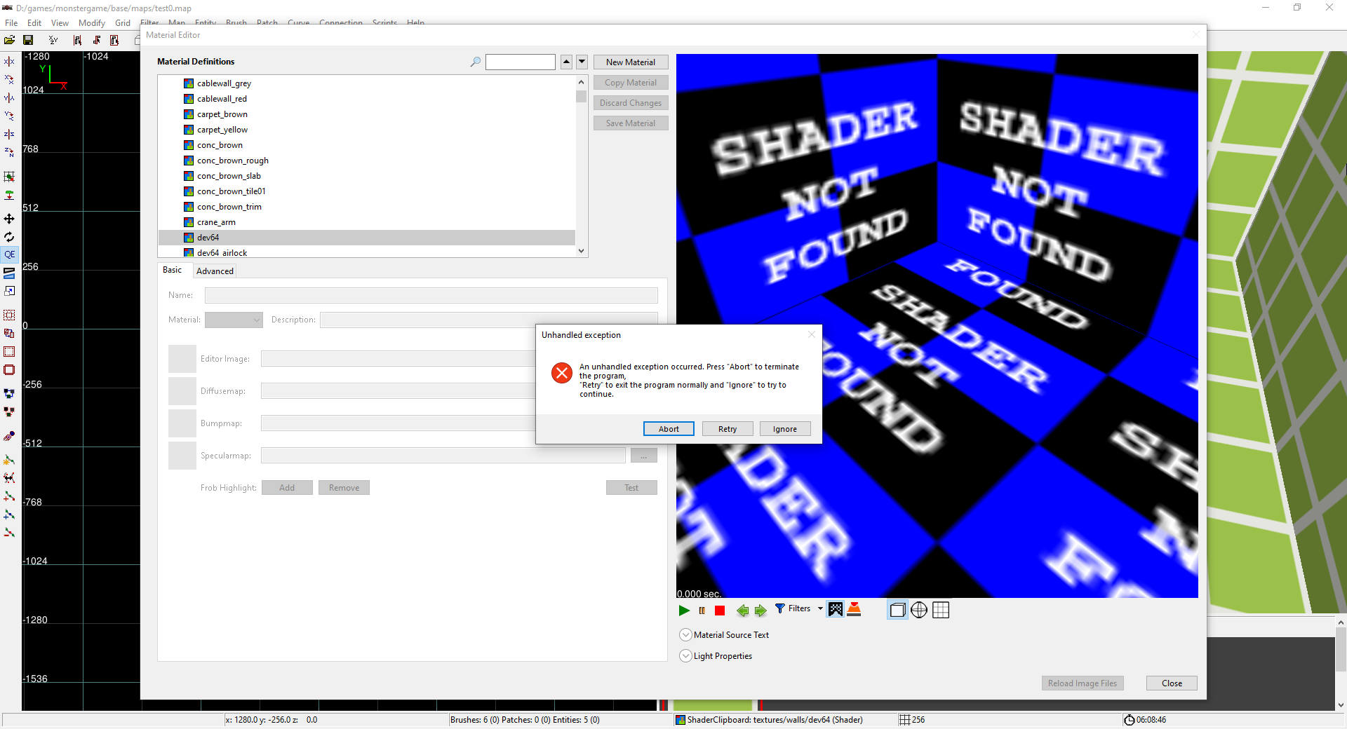 | Steps To Reproduce | 1. Go to Map > Material Editor 2. The program displays an "Unhandled exception" error popup. 3. After closing the error popup, the program crashes. | ||||