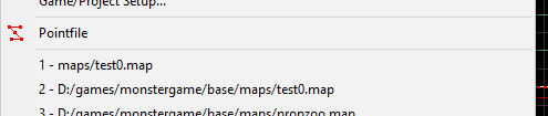 | Additional Information | Notes: • This is using a modified Doom3 gameproject setup • Pointfiles load fine if I use "Open..." to open the map instead of "Open Map From Project" • When I use "Open Map From Project" it displays a relative path in the recent map files. Whereas when I use "Open..." it uses an absolute path. I've attached an image of this. | ||||