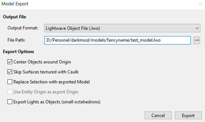 | Steps To Reproduce | My method was: 1) Select a group of func_static models. 2) File > Export selected as model... 3) Use the settings shown in the attached screenshot, update your folder path where necessary. The folder path should not exist yet. 4) Click Export. The window will close as if it had exported, but DR neither created the folder path nor exported the model. Fix: Create the folder first, then repeat the steps above. The model will now be exported to that folder. | ||||