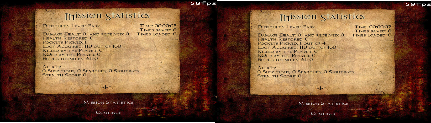 "If the player knocks out or kills AI, then maximum number of pickpockets is just some random number. It does not show anything, no?" The maximum number of pickpockets as shown on the stats screen is the amount of pickpockets performed by the player (so the number in front of "out of") plus the items that could have been pickpocketed at the end of the mission. So it is no random number, but the amount of possible pickpockets depends on whether the player grabs an item from an ai before/without koing/killing it (counts as pickpocket) or afterwards (no pickpocket). "Moreover, if player does knock people out, than he can easily get "7 out of 4", since guards which were pickpocketed than knocked out only get into the first number." As explained above this should not be possible. |
