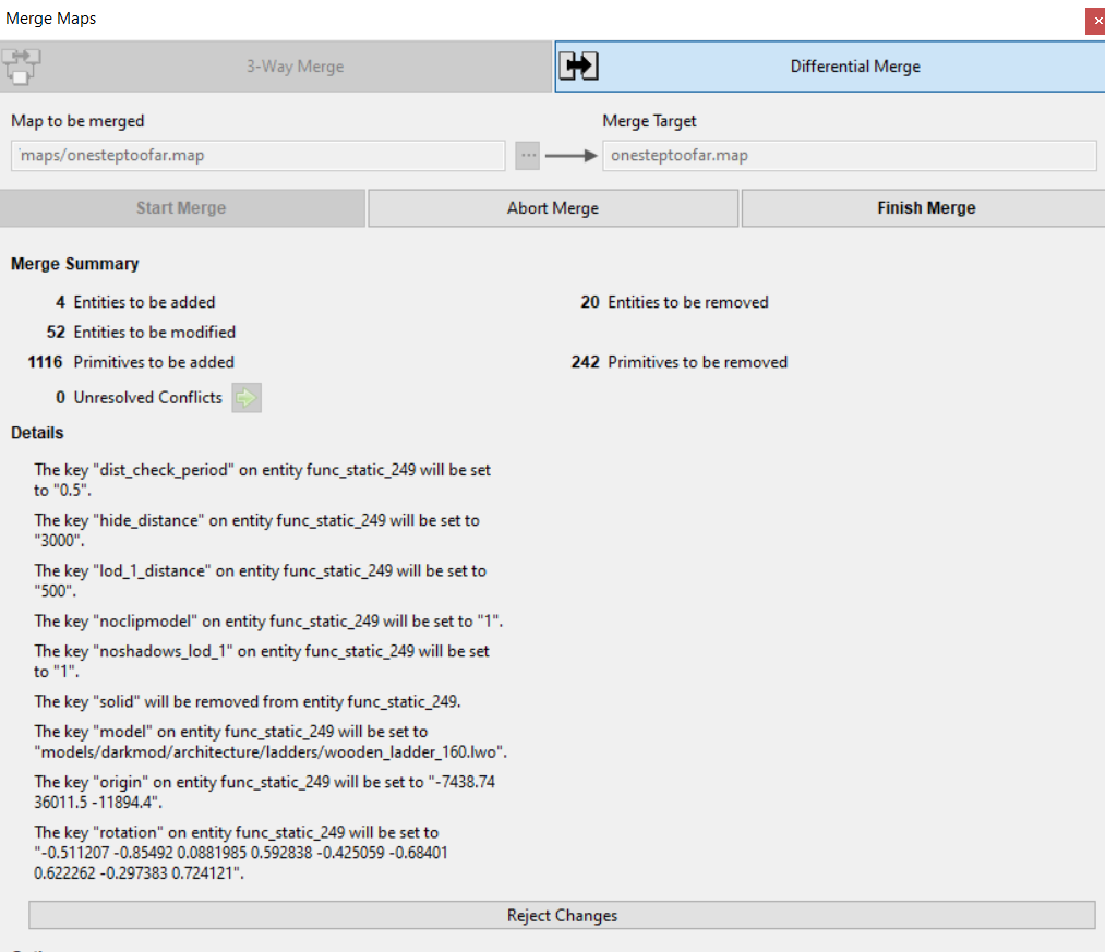 | Description | In the "Merge Maps" UI, it seems that the lines in the section "Details" aren't affected by the width of the window. It'd be nice if it were possible to get most of those changes on 1 line for a better overview. | ||||