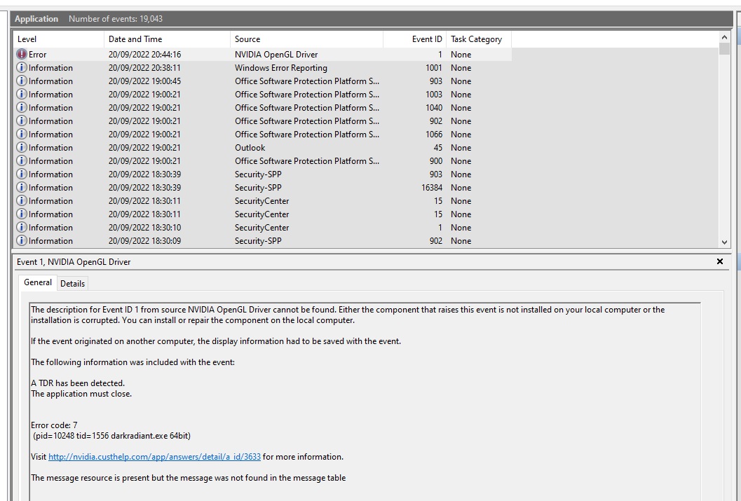 On the 3.10 CTD's, checking event viewer I am seeing 2 distinct errors - "A TDR has been detected. The application must close. Error code: 7 (pid=7196 tid=4604 darkradiant.exe 64bit) Visit http://nvidia.custhelp.com/app/answers/detail/a_id/3633 for more information." and "Faulting application name: DarkRadiant.exe, version: 3.0.0.0, time stamp: 0x6301eb00 Faulting module name: DarkRadiant.exe, version: 3.0.0.0, time stamp: 0x6301eb00 Exception code: 0xc0000005 Fault offset: 0x00000000000237e3 Faulting process ID: 0x12f4 Faulting application start time: 0x01d8ccc655761aa4 Faulting application path: C:\Program Files\DarkRadiant\DarkRadiant.exe Faulting module path: C:\Program Files\DarkRadiant\DarkRadiant.exe Report ID: 915ae6fe-37d3-4ab5-a494-704b69bd8431 Faulting package full name: Faulting package-relative application ID: " Regarding the first error, the nvidia support article is saying that windows "Increase the timeout value to allow more time to complete more intensive rendering." I have no idea WTF the second error means. I will now install DR 3.2.0 and see if I am seeing the same above errors. |