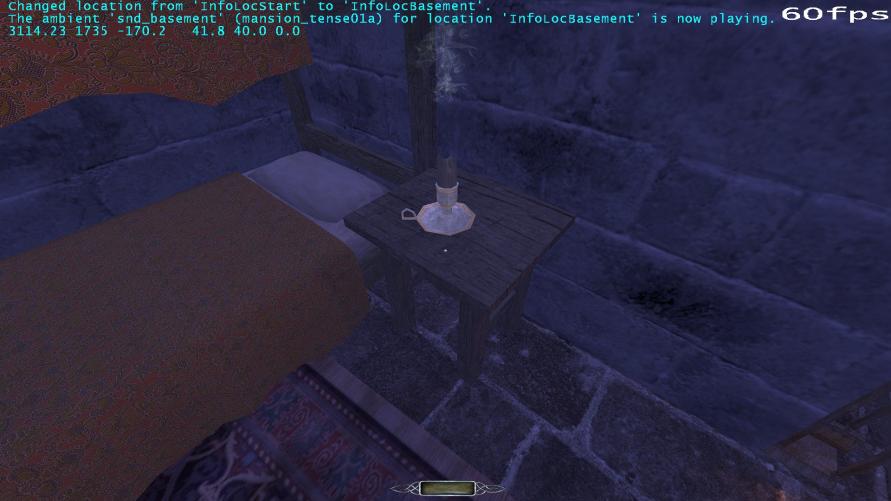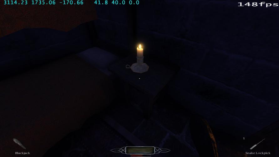 This bug is random. 1. Start the mission from the beginning each time. ("Start this mission", quitting the game is unnecessary) 2. setviewpos to the candle location as soon as the mission starts (binding a key for this helps). 3. When the candle is unlit (no bug), there is smoke rising. When the candle is lit (bug), there is no light emitted. 4. Quit mission and repeat from 0000001. The screenshots are from Seeking Lady Leicester beta. |