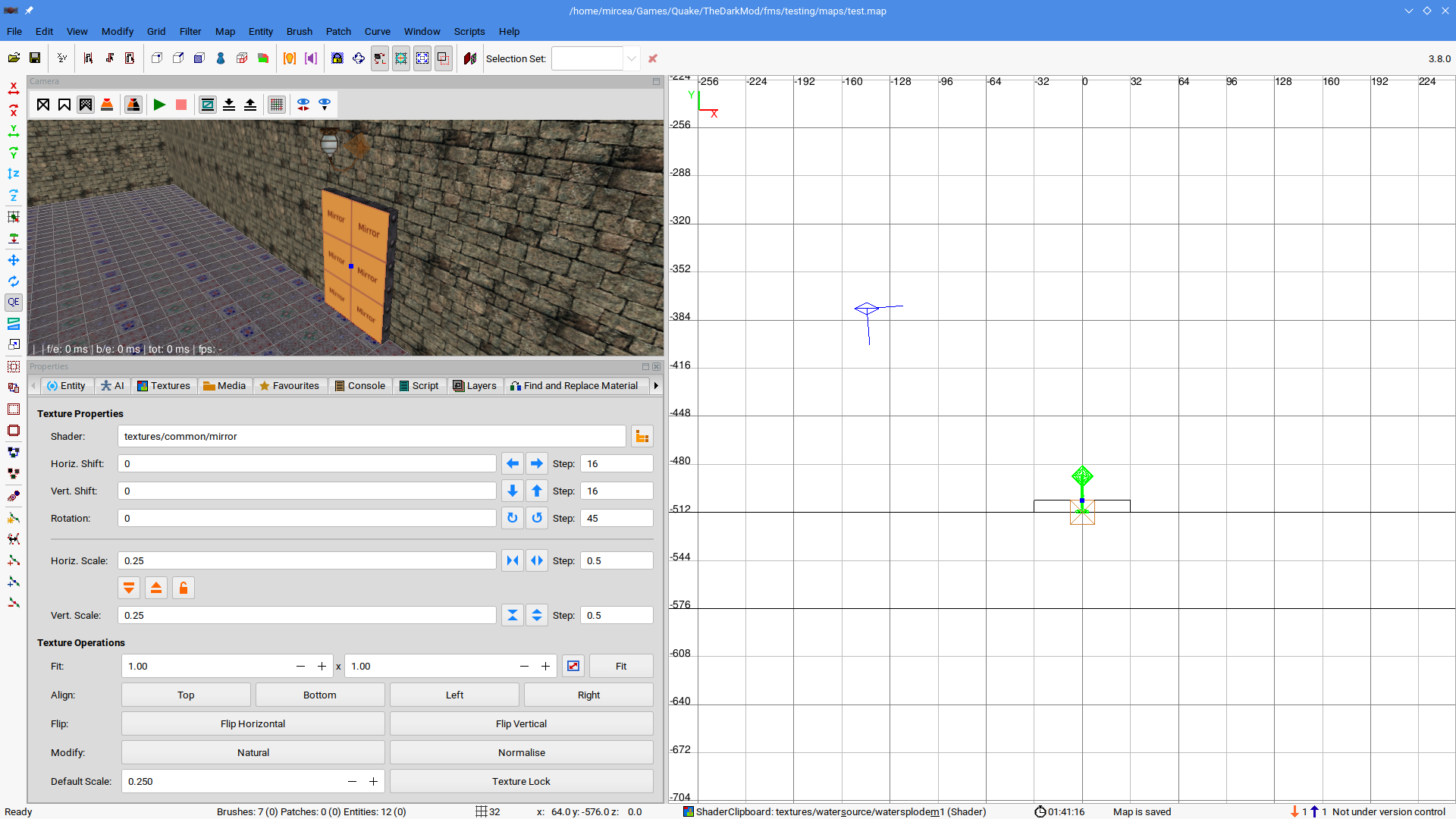 Thanks! I will likely update my mod after the next dev snapshot having the custom head enabled. I plan on making it possible to steal the helmets from guards, which will require changing the head models of AI too so I'll have to see how that works. And that's strange: That mirror is suddenly black for me as well, but it definitely worked until yesterday. Perhaps the latest dev snapshot introduced a new bug? I'm not doing anything unusual that should be causing this, it's just textures/common/mirror on the face of a square brush... maybe it only works on patches now? |