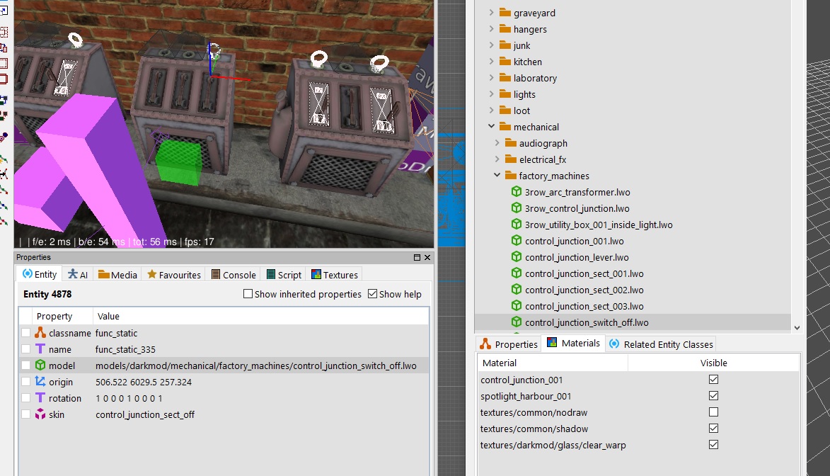 That model has no collection mesh, its a DR exported model. The original was "models/darkmod/mechanical/factory_machines/control_junction_sect_003.lwo" Replacing with original models - - 2.12 will still crash on map load. - 2.11a I was able to do repeated dmap/map cycles (sp dmap/map - close & open tdm, dmap/map - close and reopen, rince and repeat etc). with both the old and replacement models. So I dont think its this model specifically. |